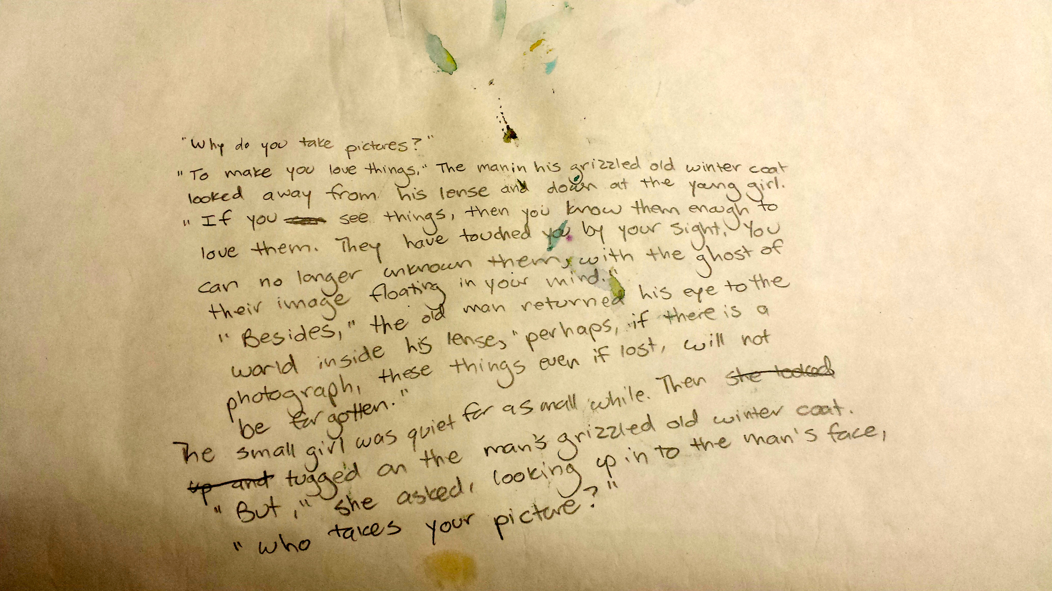 You smile, a quiver of hope small enough to force its way past the crushing deoxygenation.